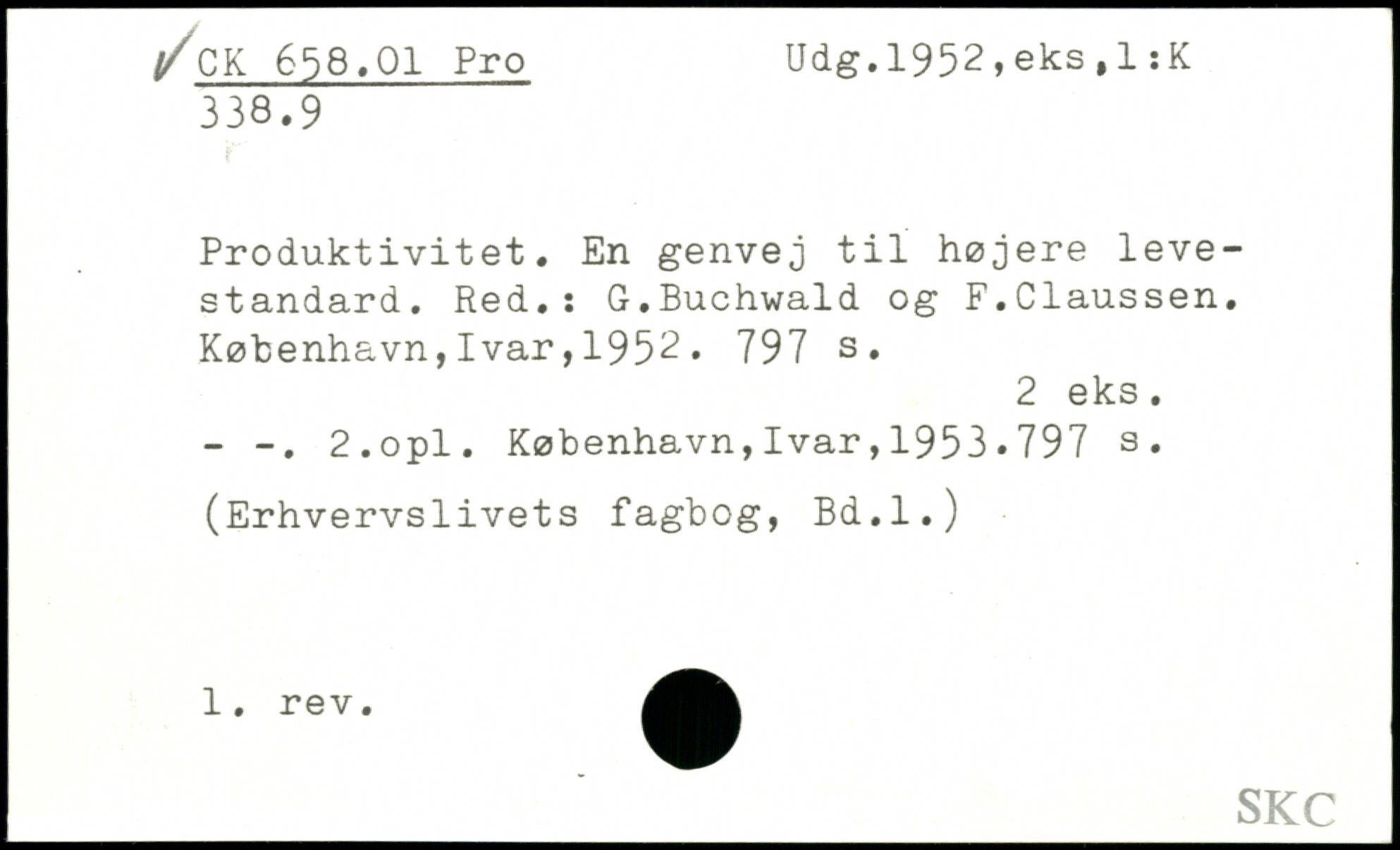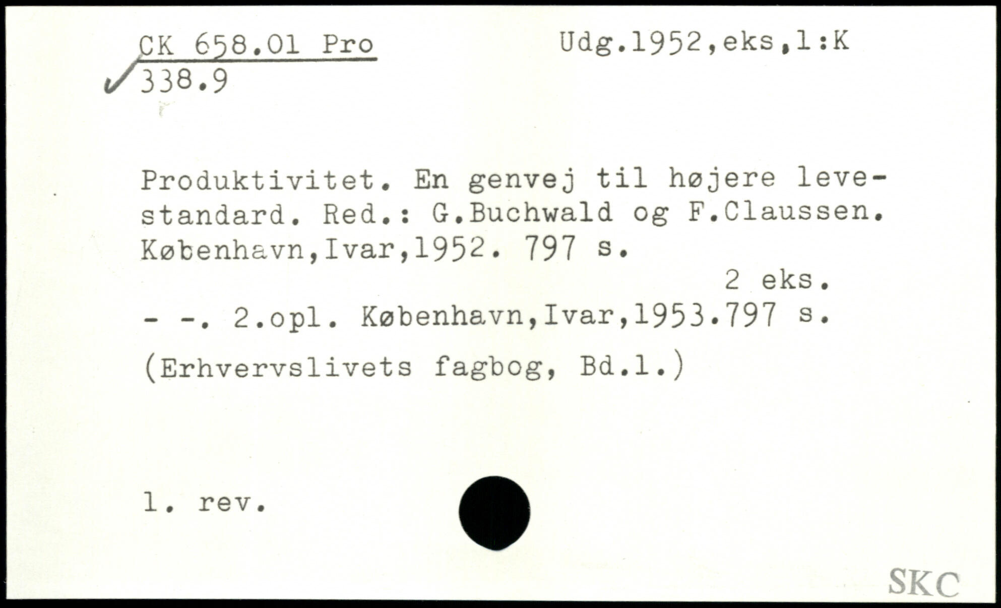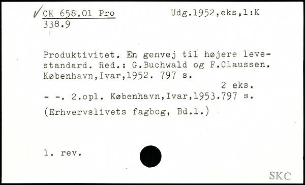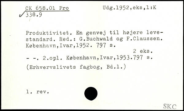 Produktivitet. En genvej til højere levestandard. Red.: G.Buchwald og F.Claussen.