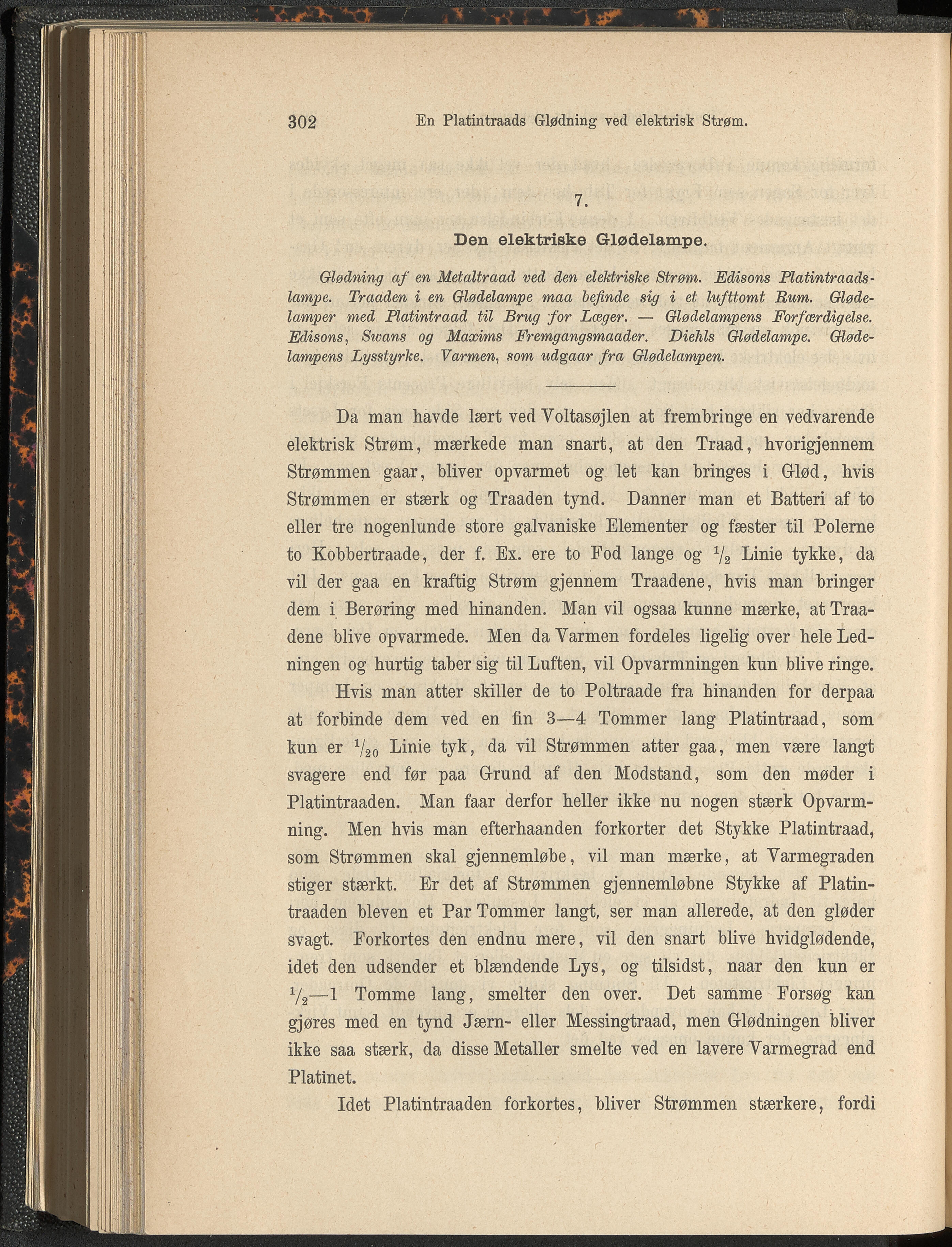Glødning af en Metaltraad ved den elektriske Strøm. Edisons Platintraads-