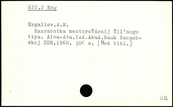 Razrabotka mestorozdenij zil'nogo tipa. Alma-Ata,Izd.Akad.Nauk Kazach-skoj SSR,1960.