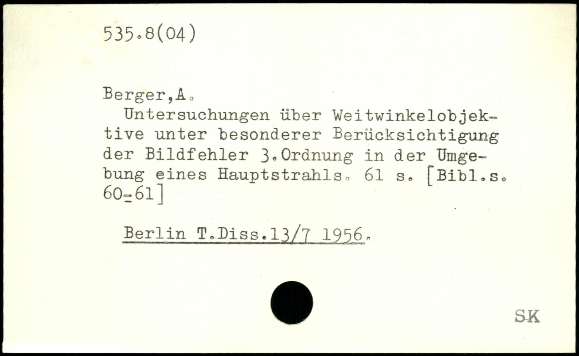 Untersuchungen über Weitwinkelobjektive unter besonderer Berücksichtigung der Bildfehler 3.Ordnung in der Umgebung eines Hauptstrahls