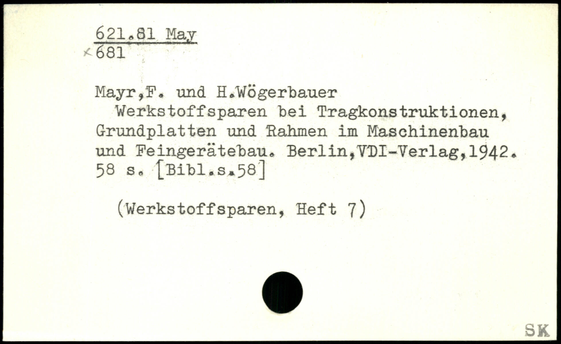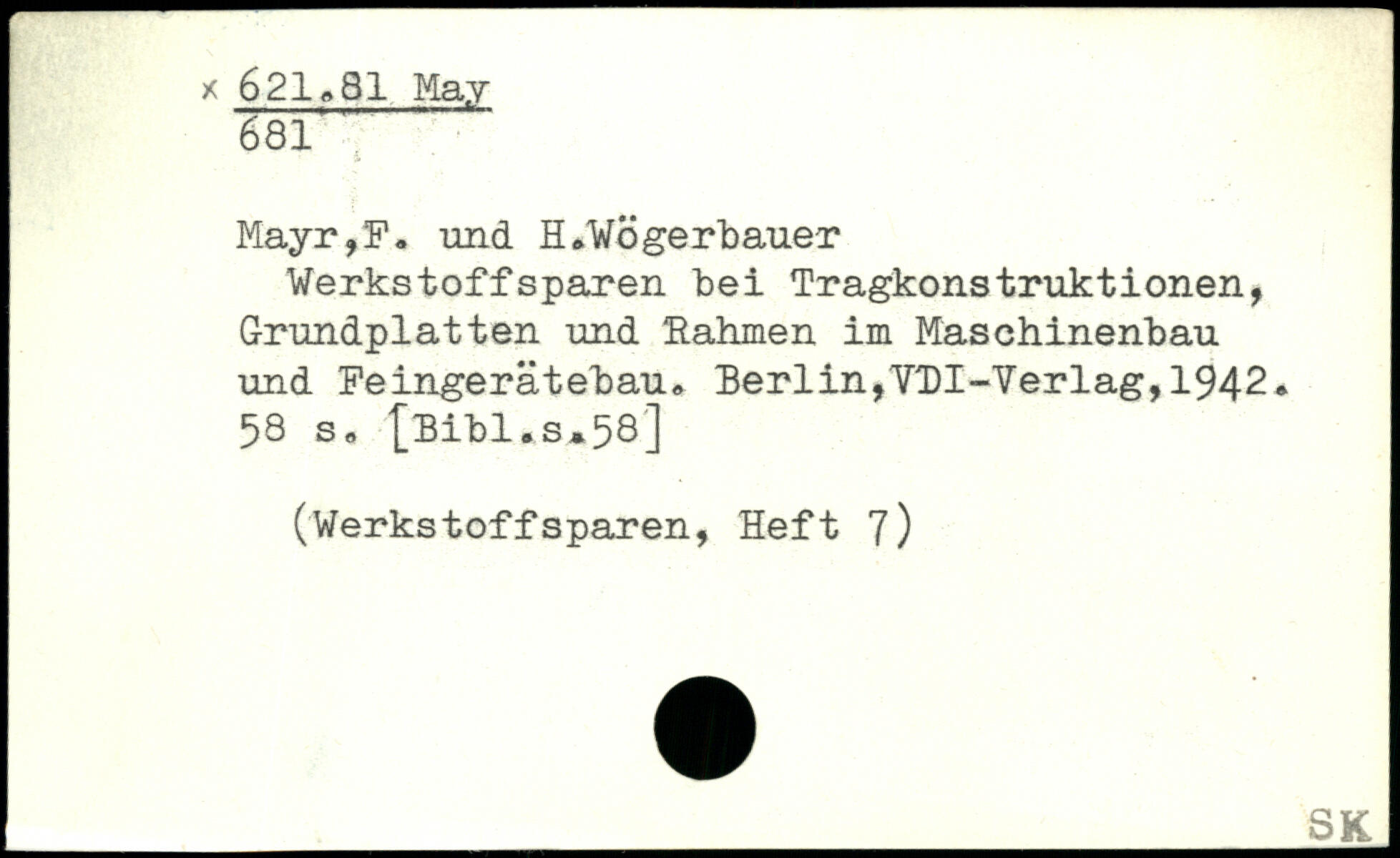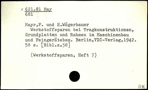 Werkstoffsparen bei Tragkonstruktionen, Grundplatten und Rahmen im Maschinenbau und Feingerätebau,