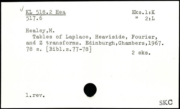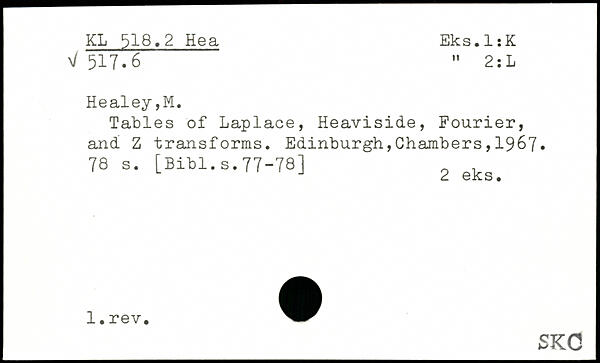 Tables of Laplace, Heaviside, Fourier, and Z transforms.