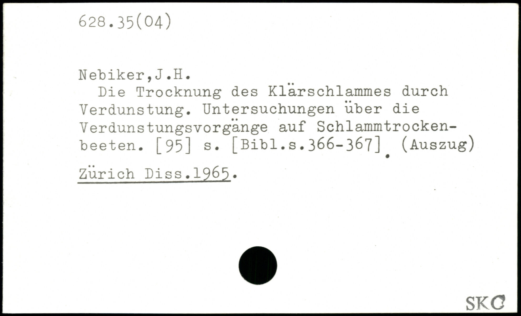 Die Trocknung des Klarschlammes durch Verdunstung. Untersuchungen über die Verdunstungsvorgange auf Schlammtrockenbeeten. [95] s.
