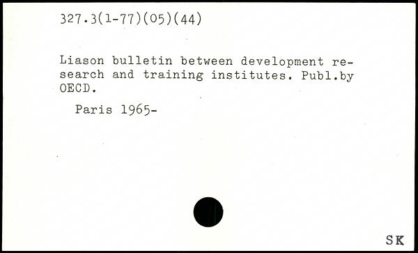 Liason bulletin between development research and training institutes. Pub 1.by-OECD.