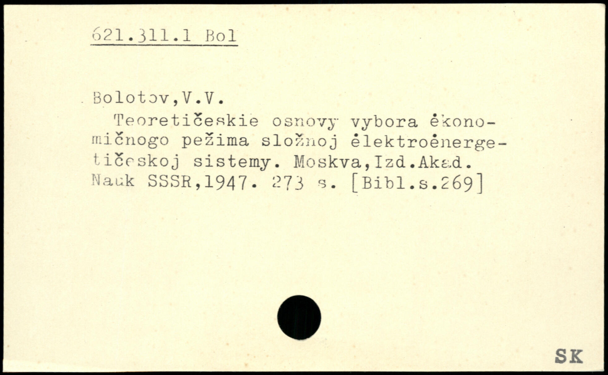 Teoreticeskie osnovy vybora ékono-micnogo peaima sloanoj élektroénerge-ticrskoj sistemy. Moskva,Izd.Akad. Nauk SSSR,1947.