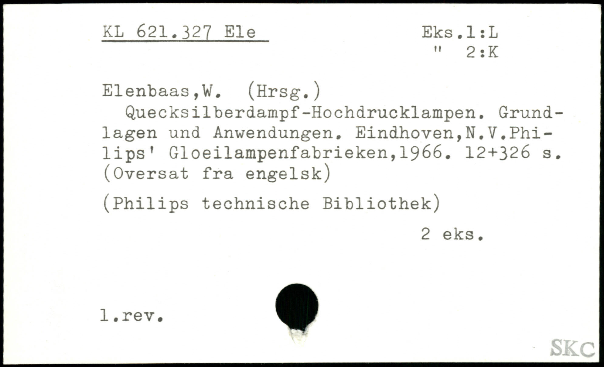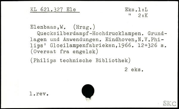 Quecksilberdampf-Hochdrucklampen. Grundlagen und Anwendungen. Eindhoven,N.V.Philips' Gloeilampenfabrieken,1966.