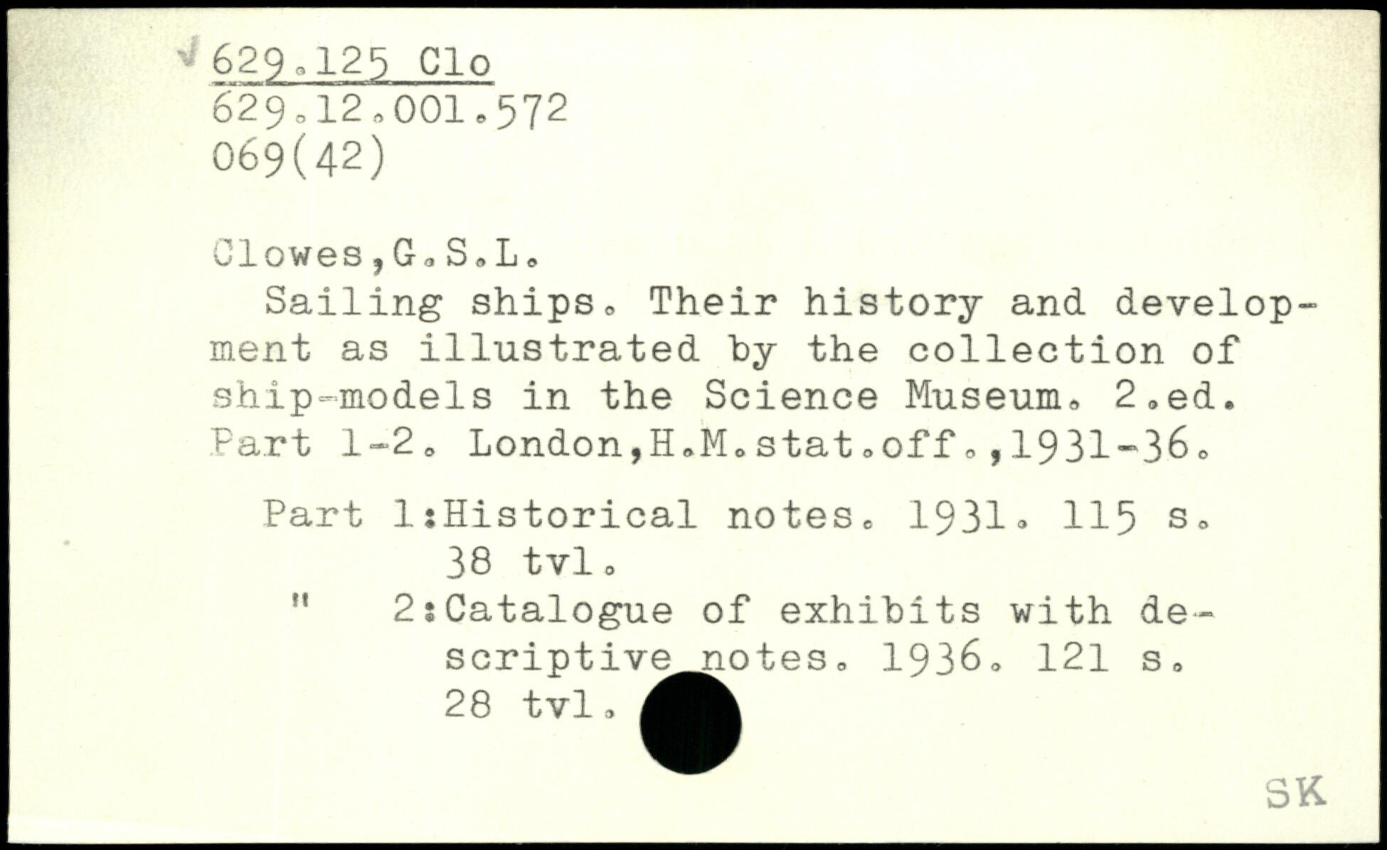 Sailing ships, Their history and development as illustrated by the collection of ship-models in the Science Museum, 2,ed. Fart 1-2, London,H,MoStat<>offo ,1931-36. Part IsHistorical notes, 1931
