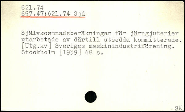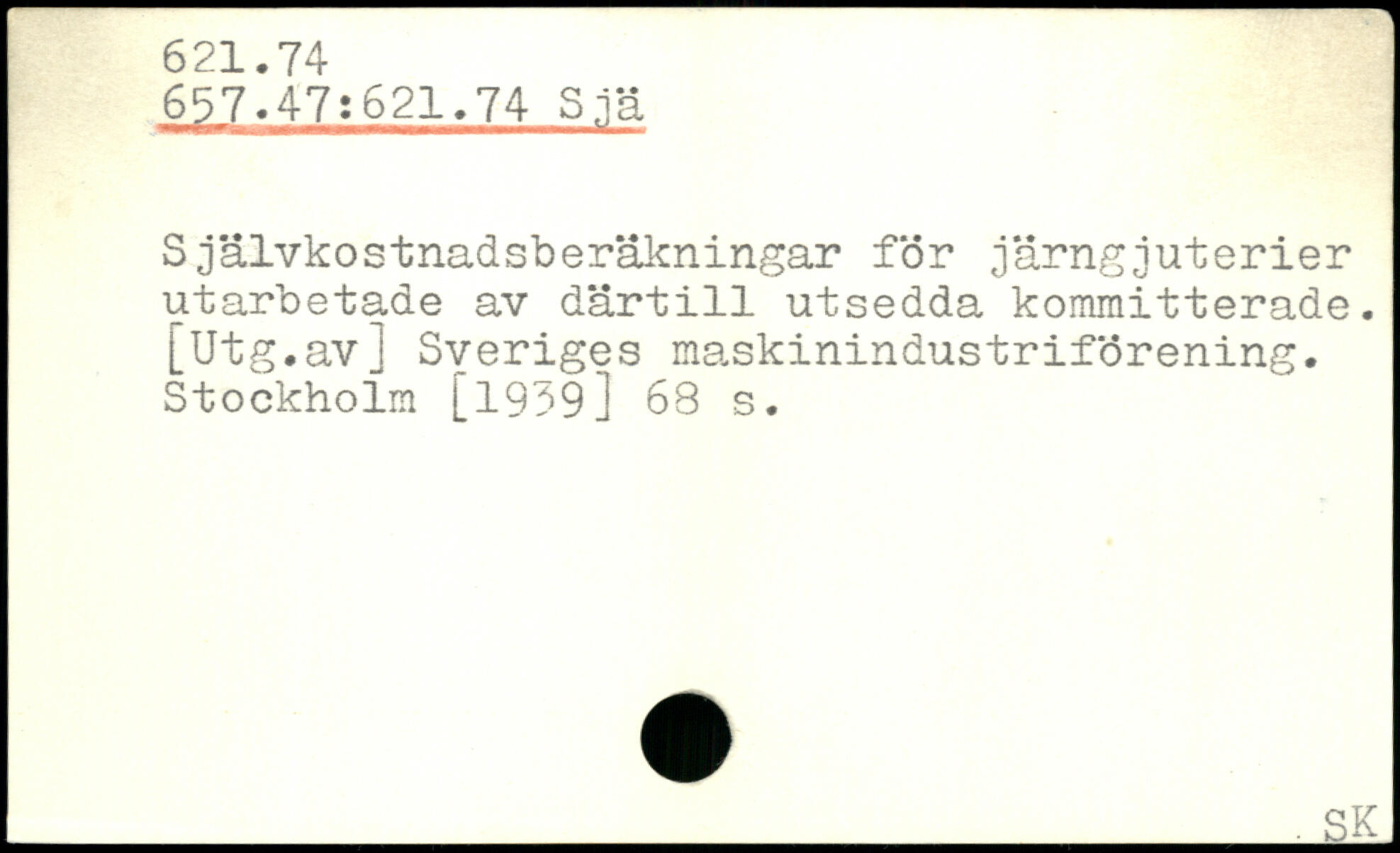 Självkostnadsberäkningar för järngiuterier utarbetade av därtill utsedda kommitterade. [Utg.av] Syeriges maskinindustriförening.