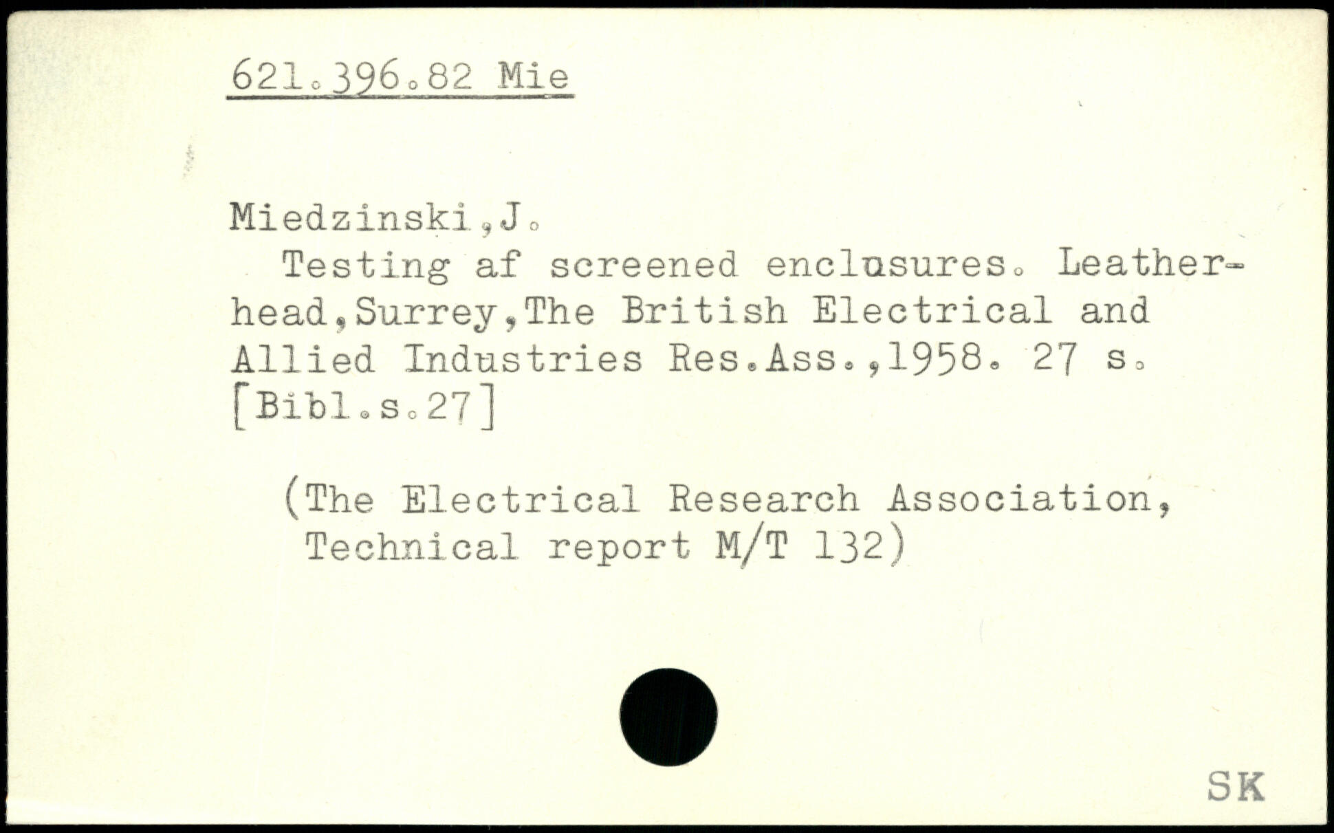 Testing af screened enclusureso Leather-head, Surrey, The British Electrical and Allied Industries Res.Ass.,1958
