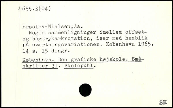 Frøslev-NieIsen,Aa. Nogle sammenligninger imellem offset-og bogtrykarkrotation, især med henblik på sværtningsvariationer.