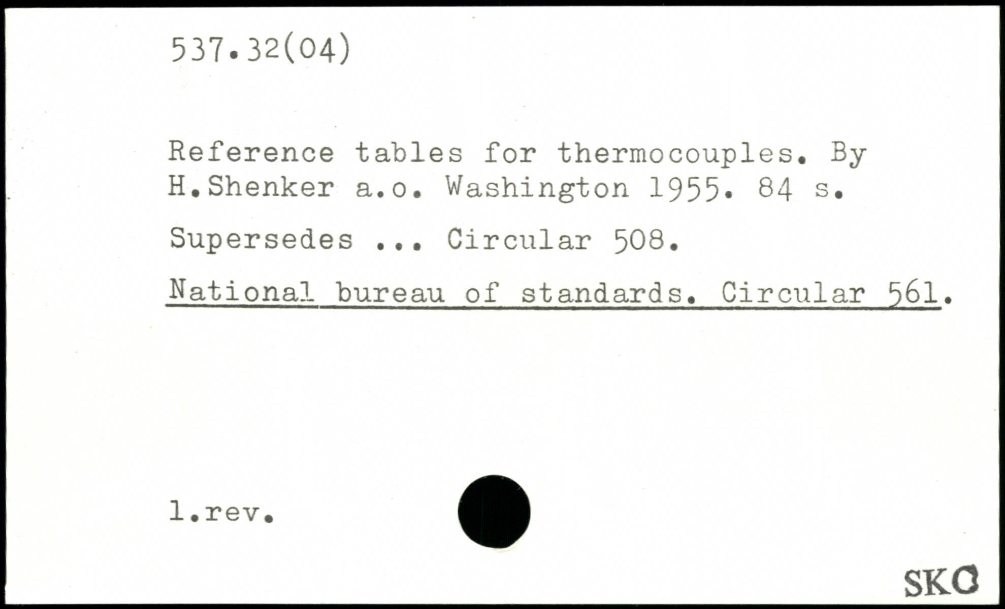 Reference tables for thermocouples. By H.Shenker a.o.