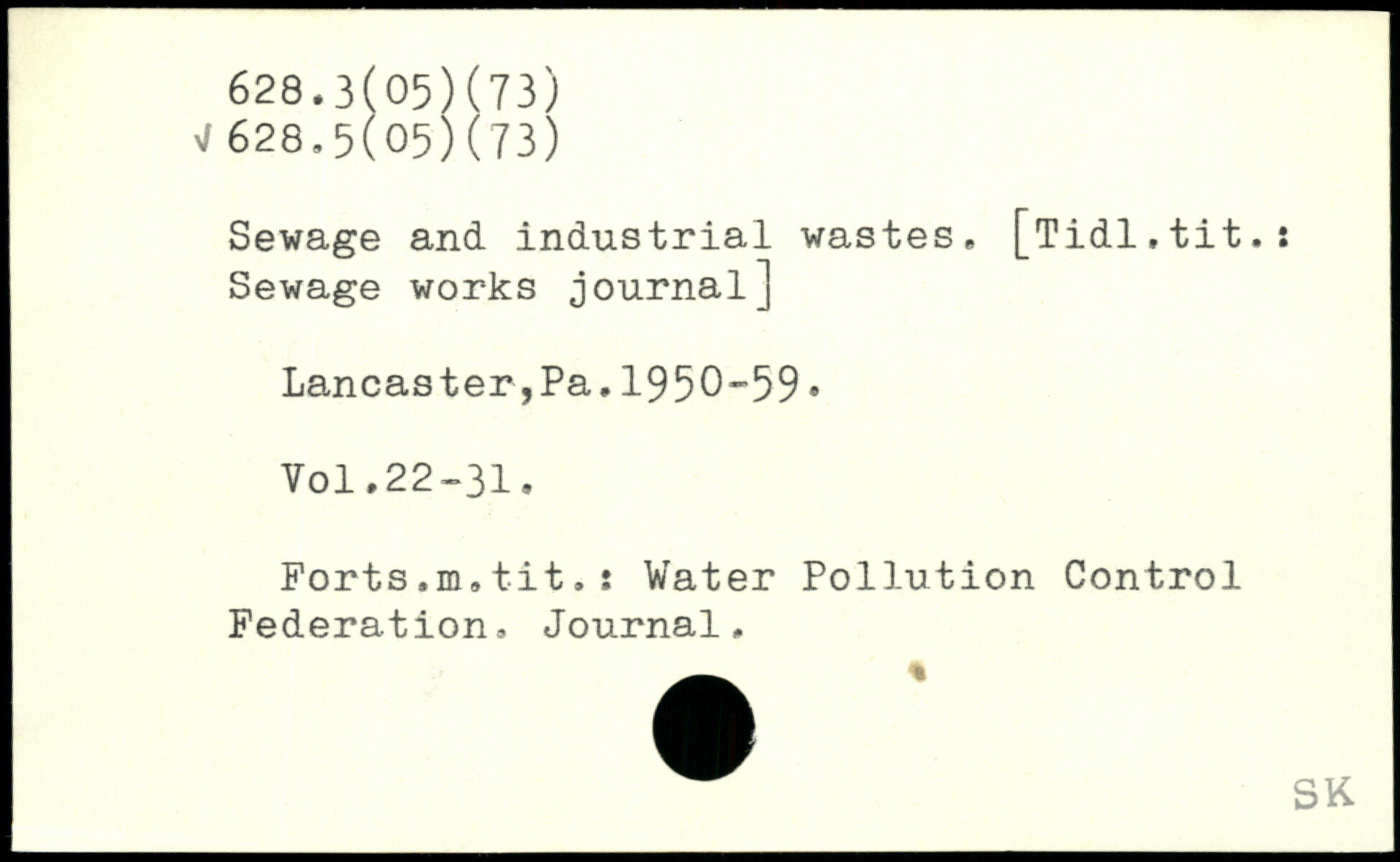 Sewage and industrial wastes. [Tidl.tit.: Sewage works journal] Lancaster,Pa.1950-59.