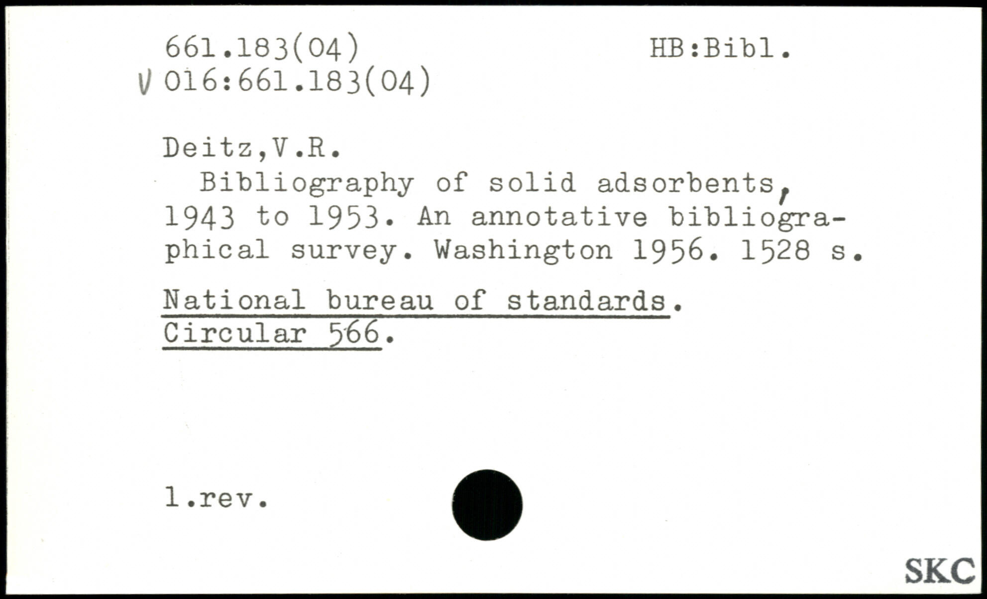 Bibliography of solid adsorbents^ 1943 to 1953. An annotative bibliographical survey.