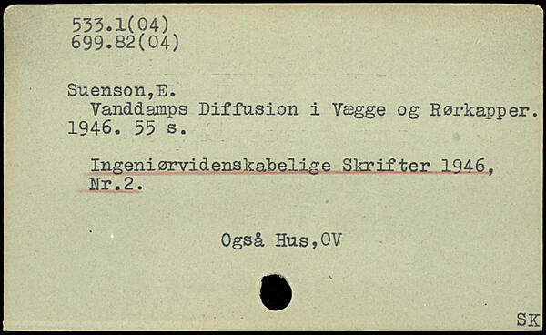 Vanddamps Diffusion i Vægge og Hørkapper. 1946