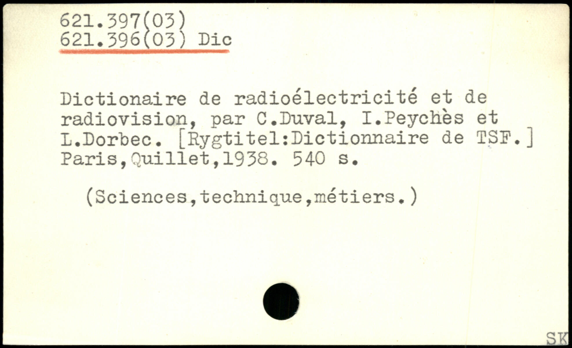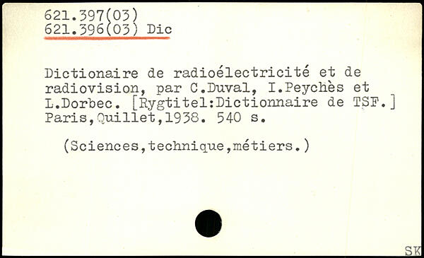 Dictionaire de radioélectricité et de radiovision, par C.Duval, I.Peychès et L.Lorbec. [Rygtitel:Dictionnaire de TSF.]