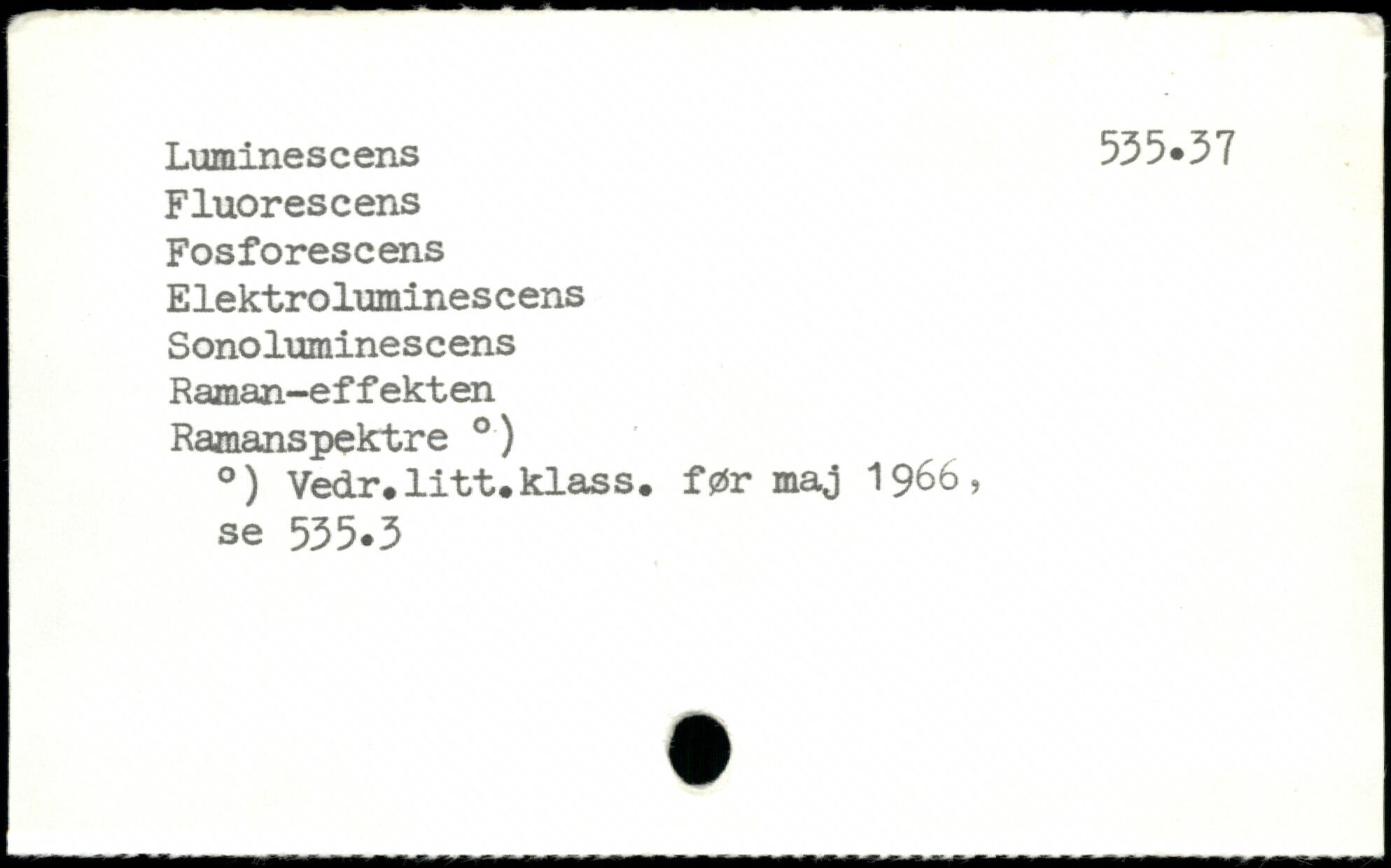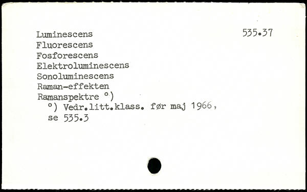 Fluorescens Fosforescens E lektrolumines c ens Sonoluminescens Raman-effekten Ramanspektre .) .) Vedr.litt.klass. før maj 1966, se 535.3