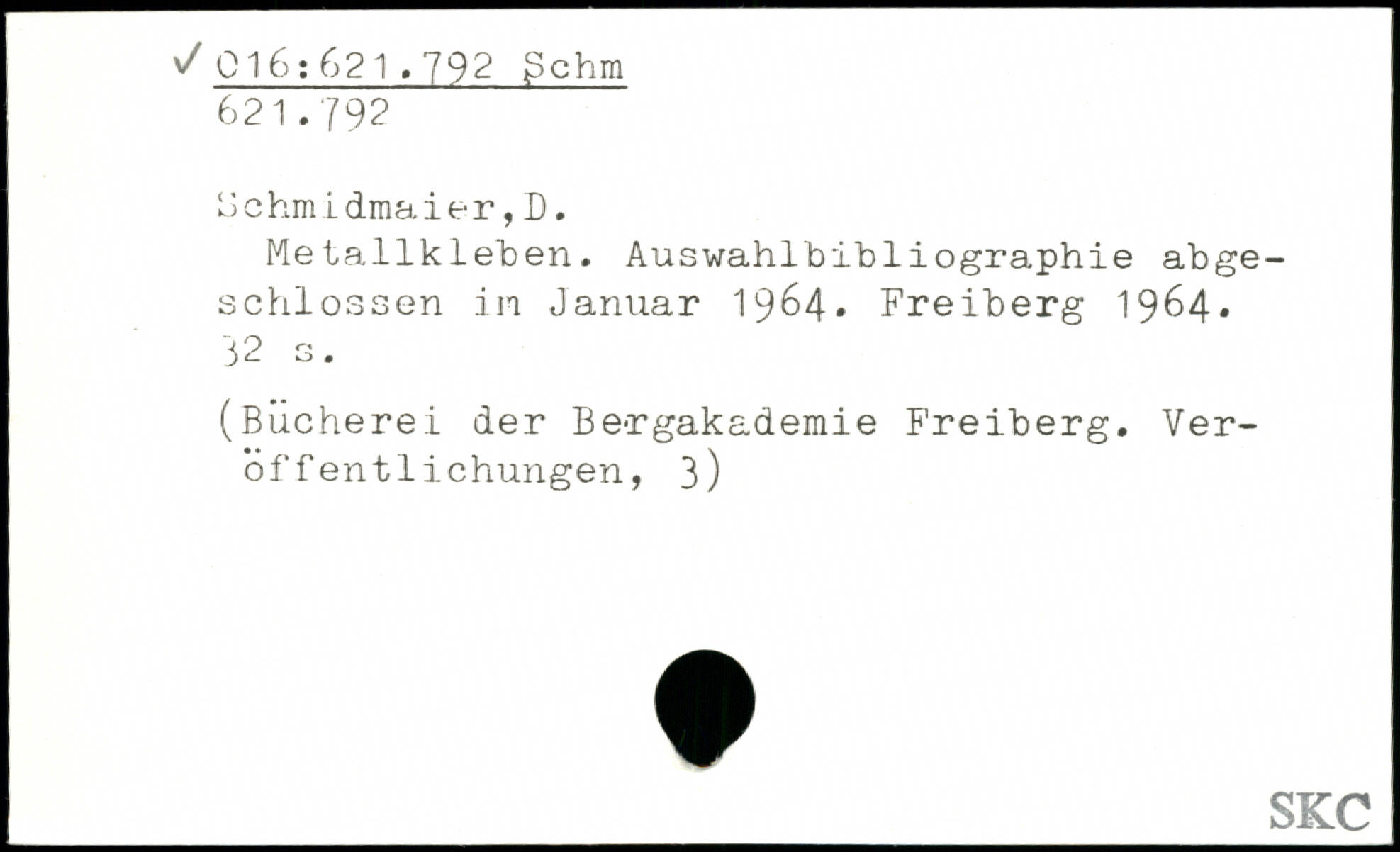 oc hm idma i e r,D. Metallkleben. Auswahlbibliographie abgeschlossen im Januar 1964. Freiberg 1964