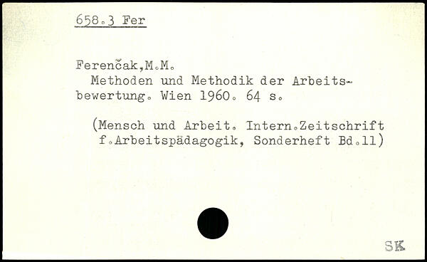 Methoden und Methodik der Arbeitsbewertung Vien 19600