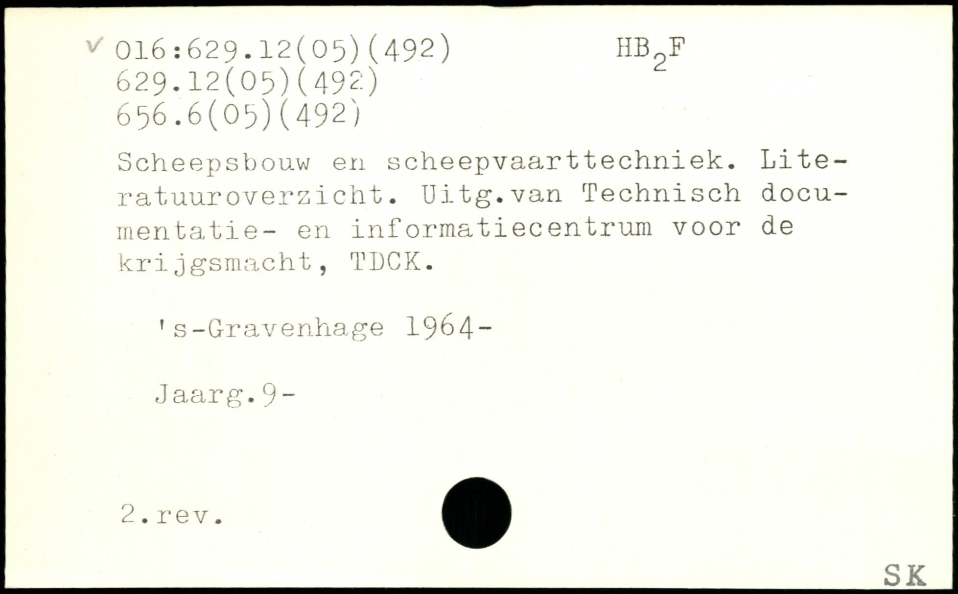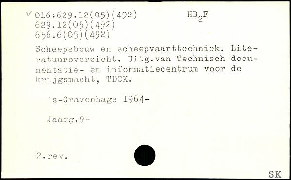 Scheepsbouw en scheepvaarttechniek. Lite-ratuuroverzicht. Uitg.van Technisch docu-mentatie- en informatiecentrum voor de krijgsmacht, TDCK. 's-Gravenhage 1964-Jaarg.9- rev _yc