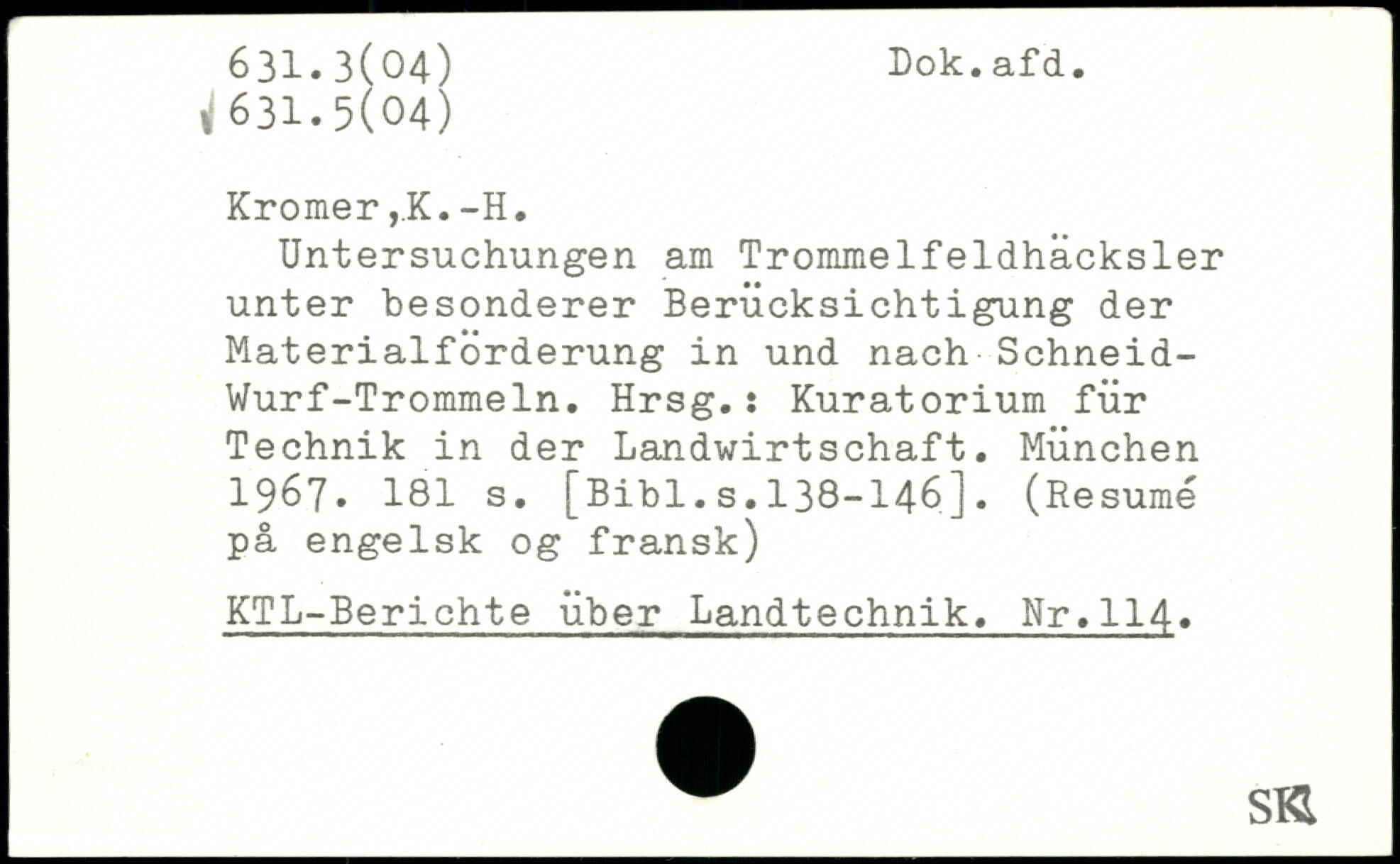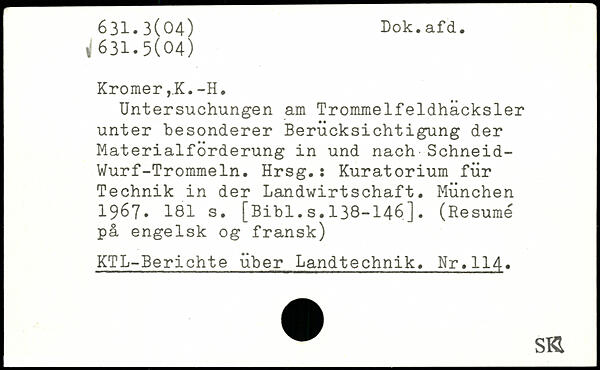 Untersuchungen am Trommelfeldhäcksler unter besonderer Berücksichtigung der Materialförderung in und nach Schneid-Wurf -Trommeln. Hrsg.: Kuratorium für Technik in der Landwirtschaft.