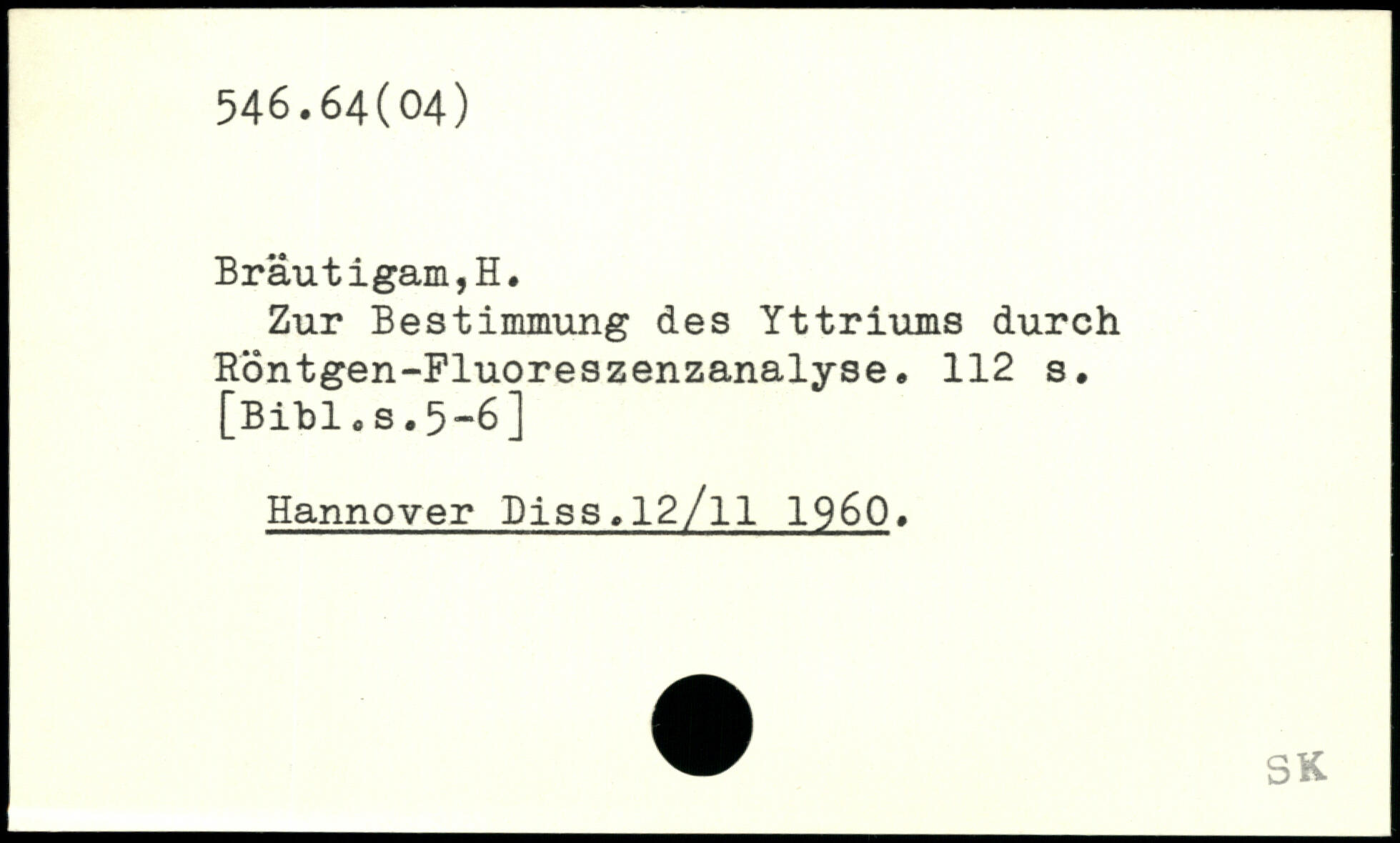 Zur Bestimmung des Yttriums durch Röntgen-Fluoreszenzanalyse.
