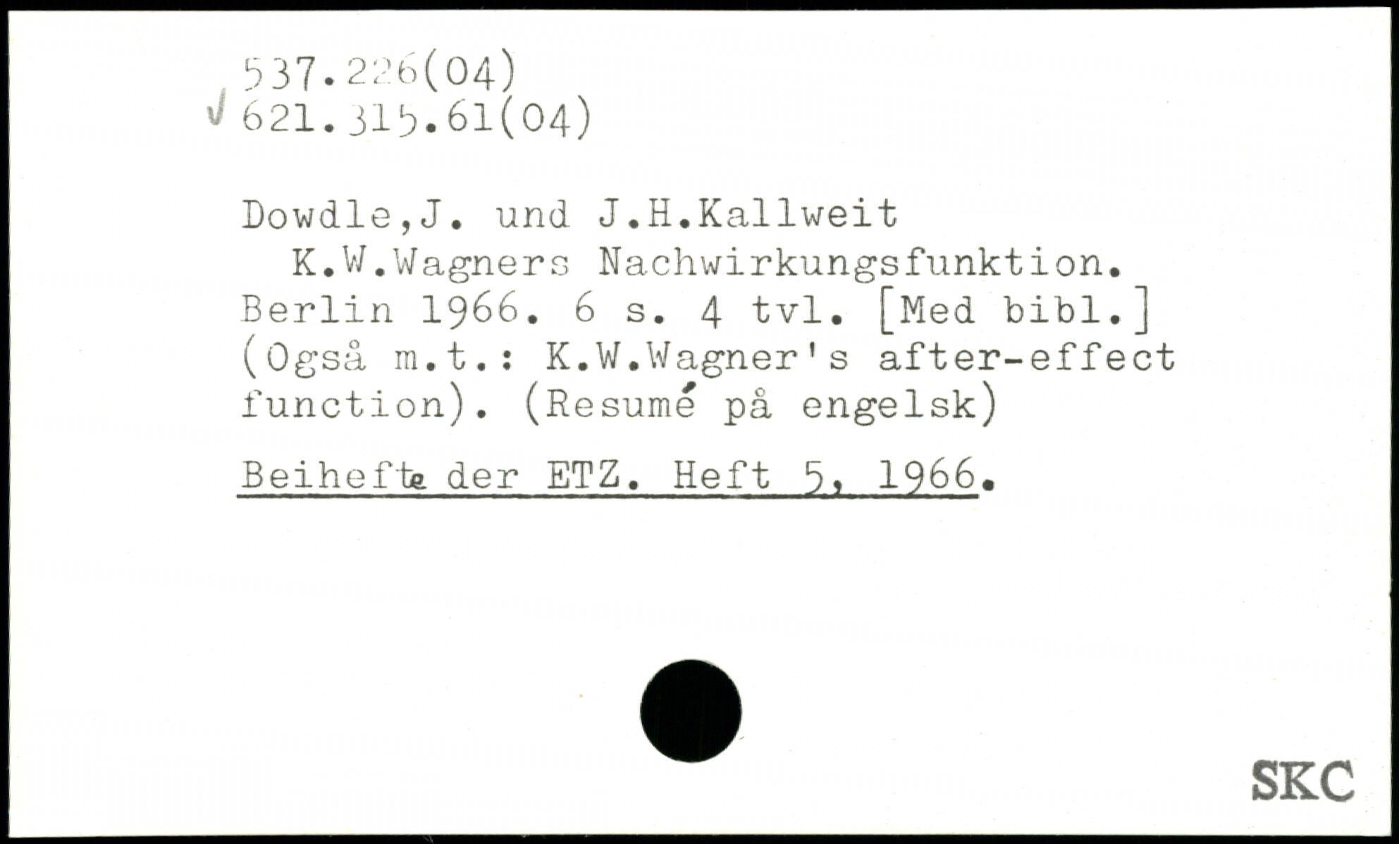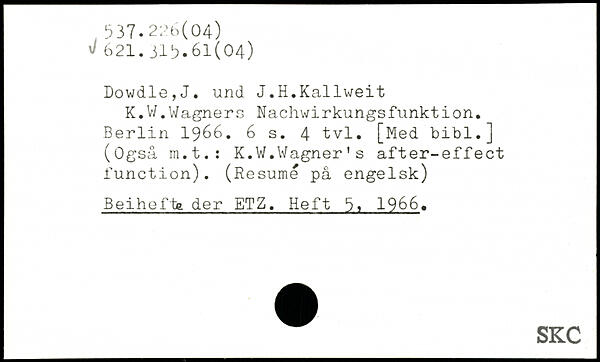 K.V/. Wagner s Nachwirkungsfunkt ion.