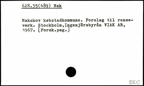 Nakskov købstadkommune, Forslag til rense-værk, Stockholm,Ingenjorsbyrån VIAK AB, 1967. [Forsk.pag.]