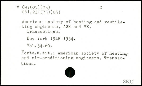 American society of heating and ventilating engineers, ASH and VE, Transactions.