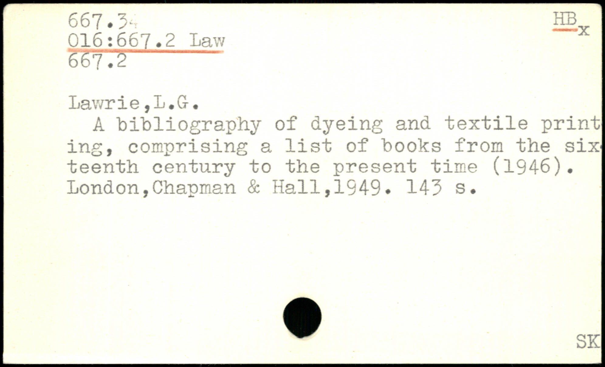 A bibliography of dyeing and textile print ing, comprising a list of books from the six teenth century to the present time (1946)