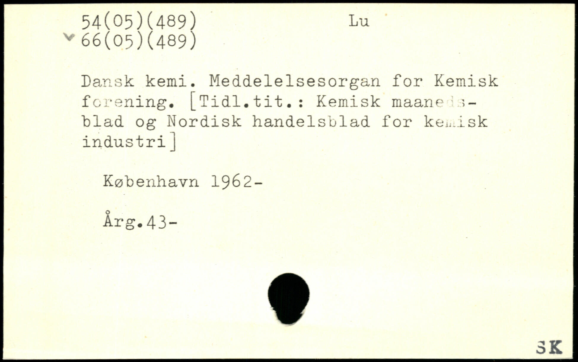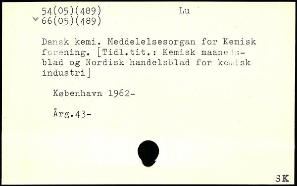 Dansk kemi. Meddelelsesorgan for Kemisk forening. [Tidl.tit.: Kemisk maanei >-blad og Nordisk handelsblad for kemisk industri]