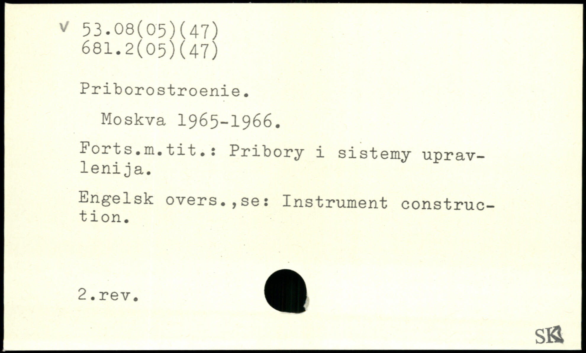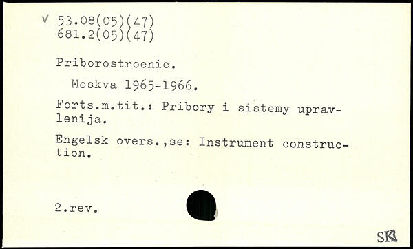 Fort s.m.tit.: Pribory i sistemy uprav-lenija. Engelsk overs.,se: Instrument construction. i;