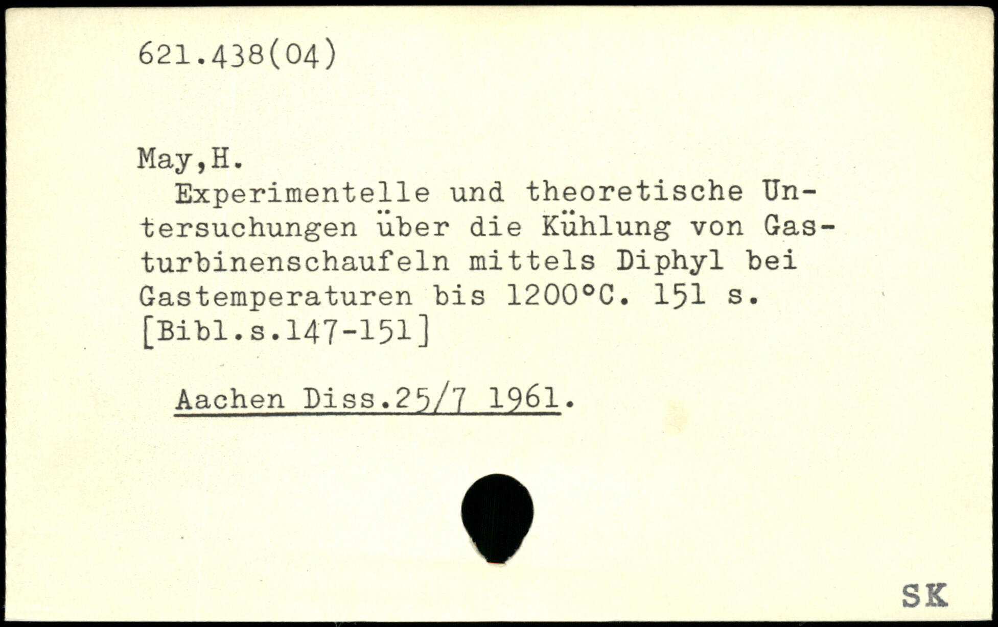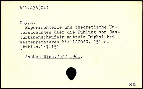 Experimentelle und theoretische Untersuchungen über die Kühlung von Gasturbinenschaufeln mittels Diphyl bei Gastemperaturen bis 1200.C.