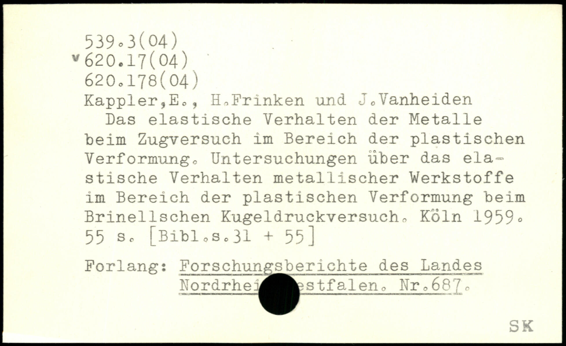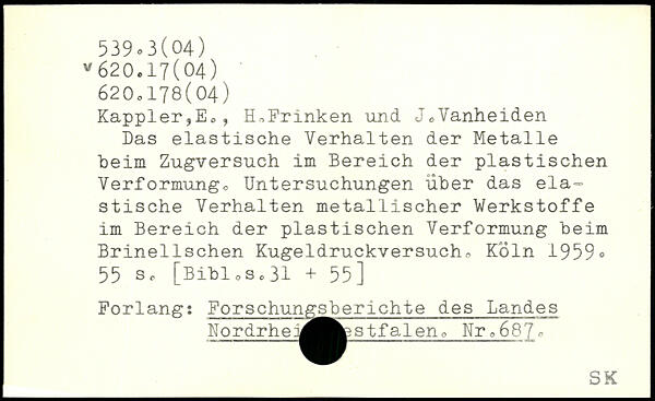 Kappler,Eo, ELFrinken und J0Vanheiden Das elastische Verhalten der Metalle beim Zugversuch im Bereich der plastischen Verformung, Untersuchungen über das elastische Verhalten metallischer Werkstoffe im Bereich der plastischen Verformung beim Brinellschen Kugeldruckversuch