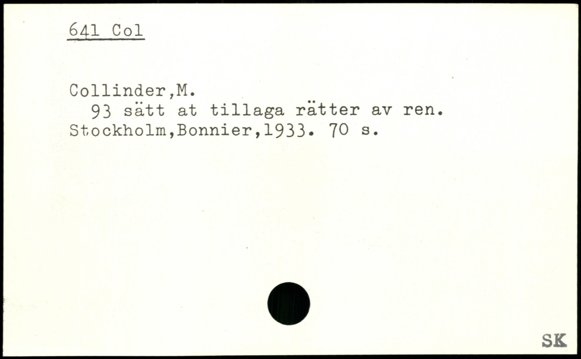 93 sätt at tillaga rätter av ren. Stockholm,Bonnier,1933, 70 s.