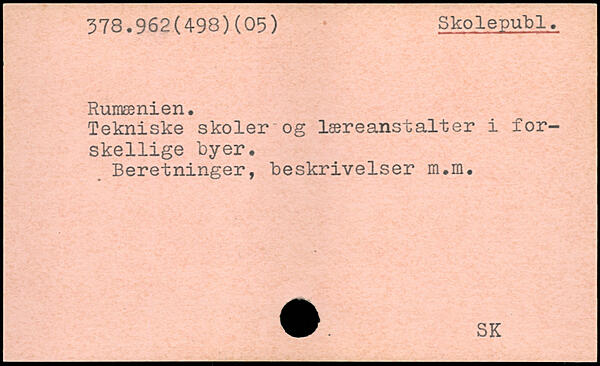 Tekniske skoler og læreanstalter i forskellige byer. Beretninger, beskrivelser m.m.