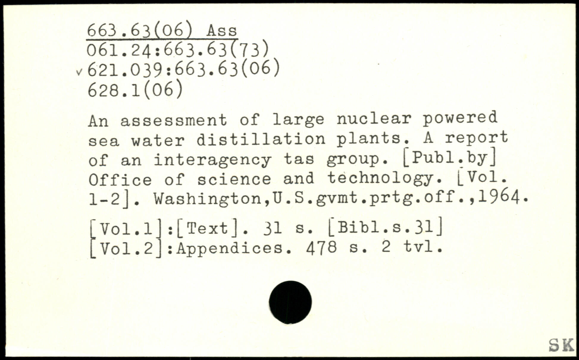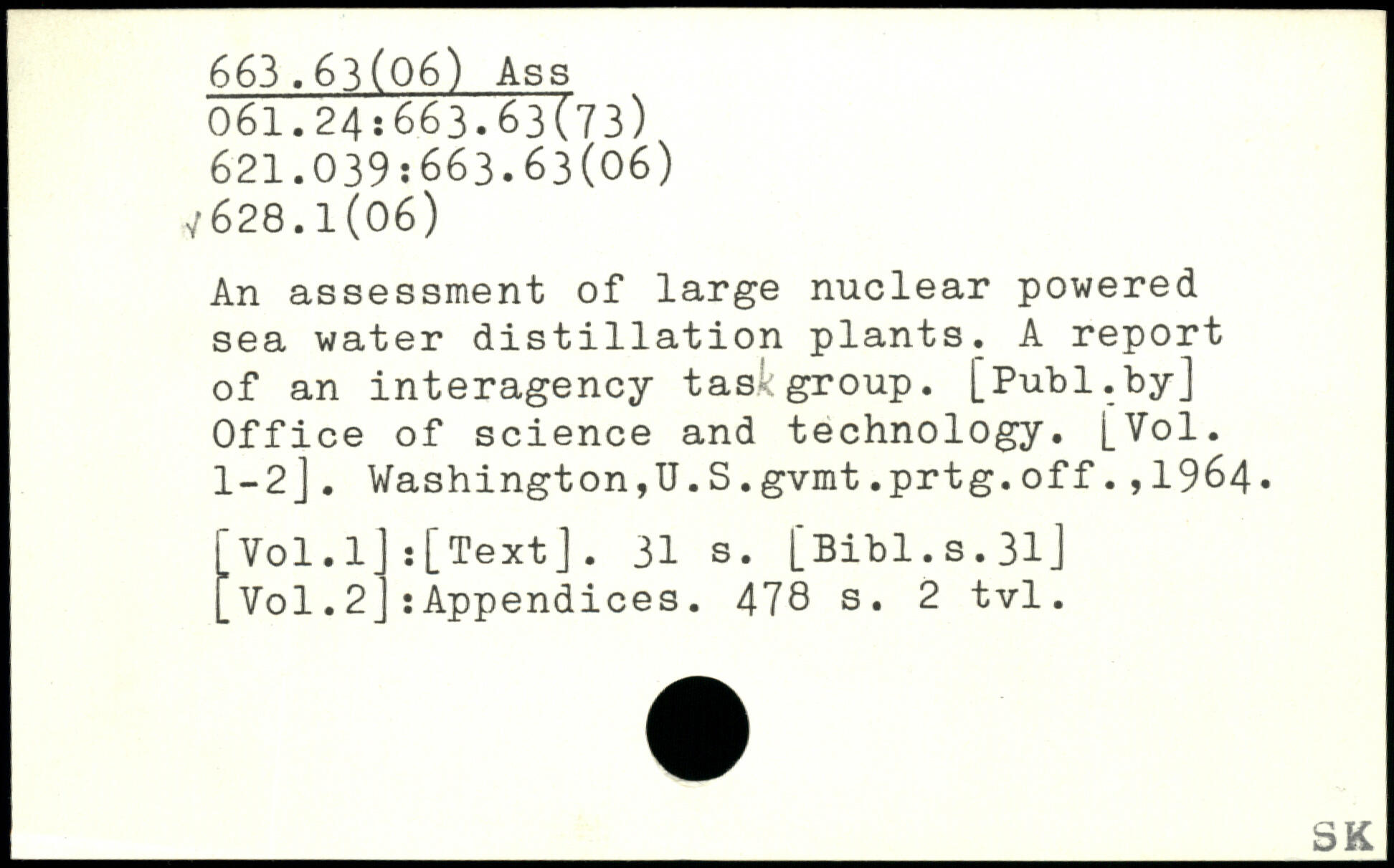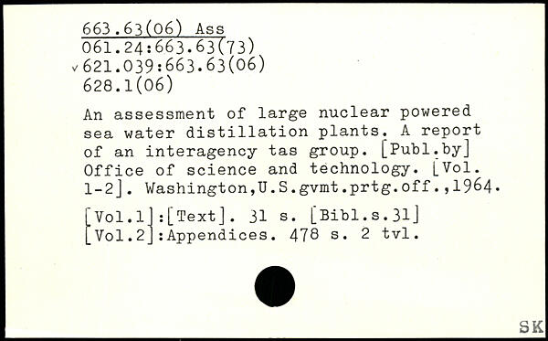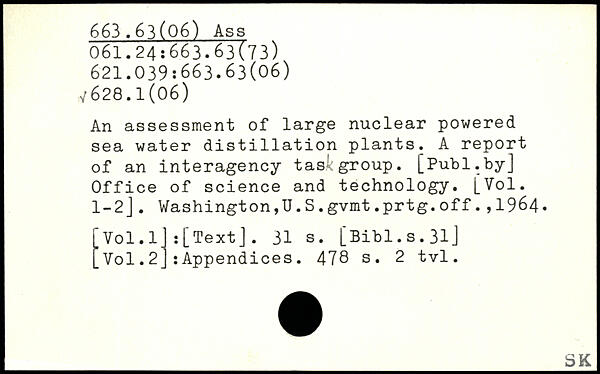 An assessment of large nuclear powered sea water distillation plants. A report of an interagency tas group.