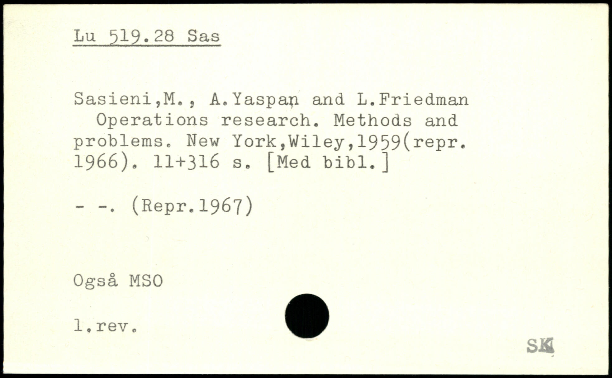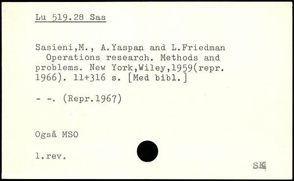 Sasieni,M., A.Yaspan and L.Friedman Operations research. Methods and problems.