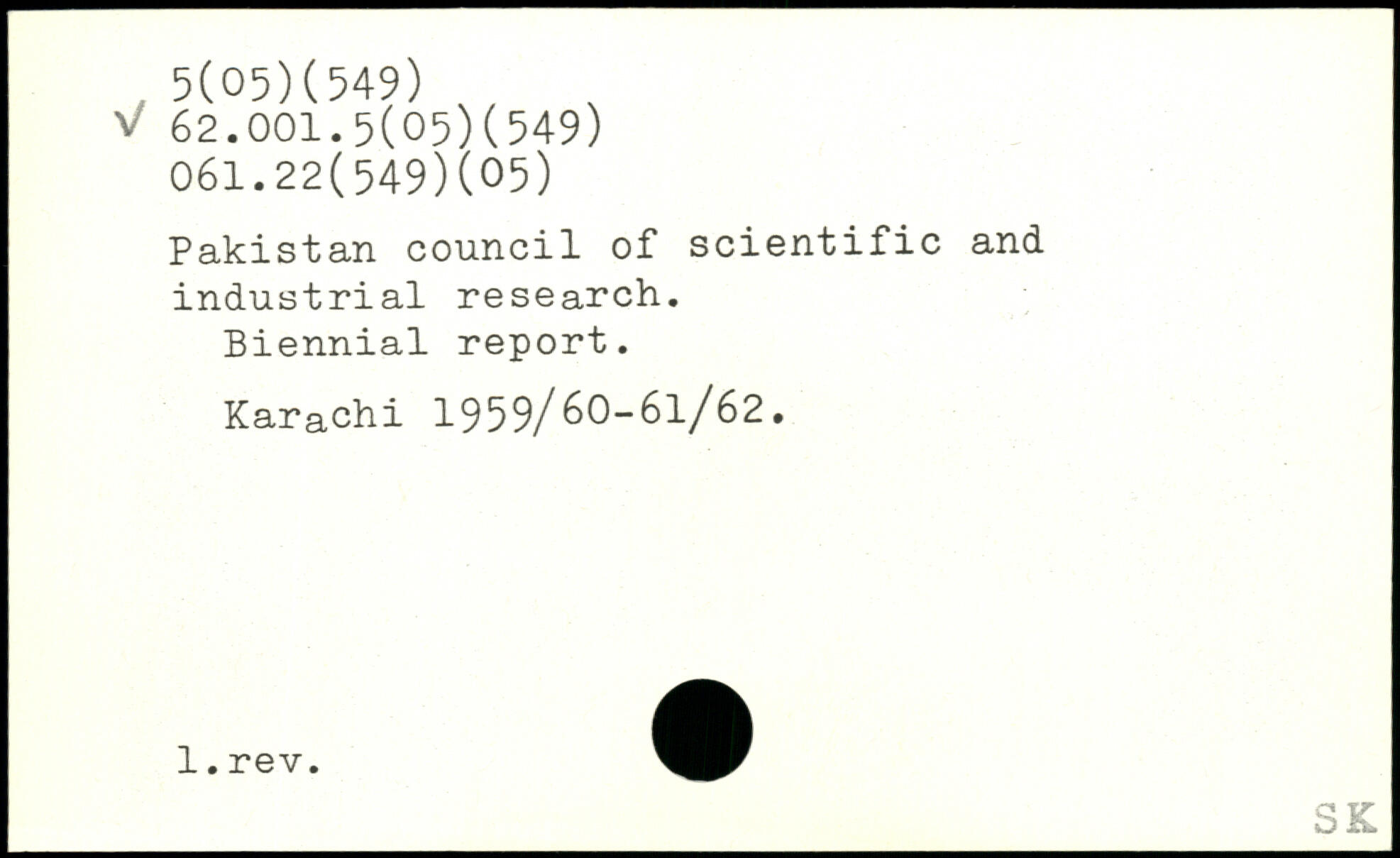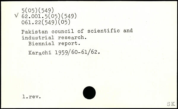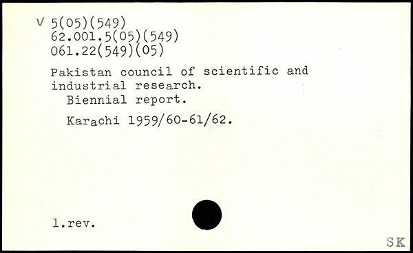 Pakistan council of scientific and industrial research. Biennial report. Karachi 1959/60-61/62.