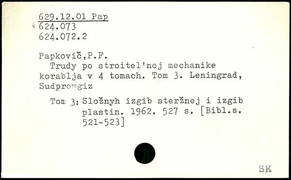 Trudy po stroitel'noj mechanike korablja v 4 tomach. Tom 3. Leningrad, Sudpromgiz Tom 3; Sloznyh izgib sterznej i izgib plastin. 1962.