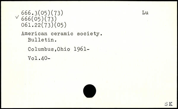 American ceramic society. Bulletin. Columbus,Ohio 1961-V0I.4O-