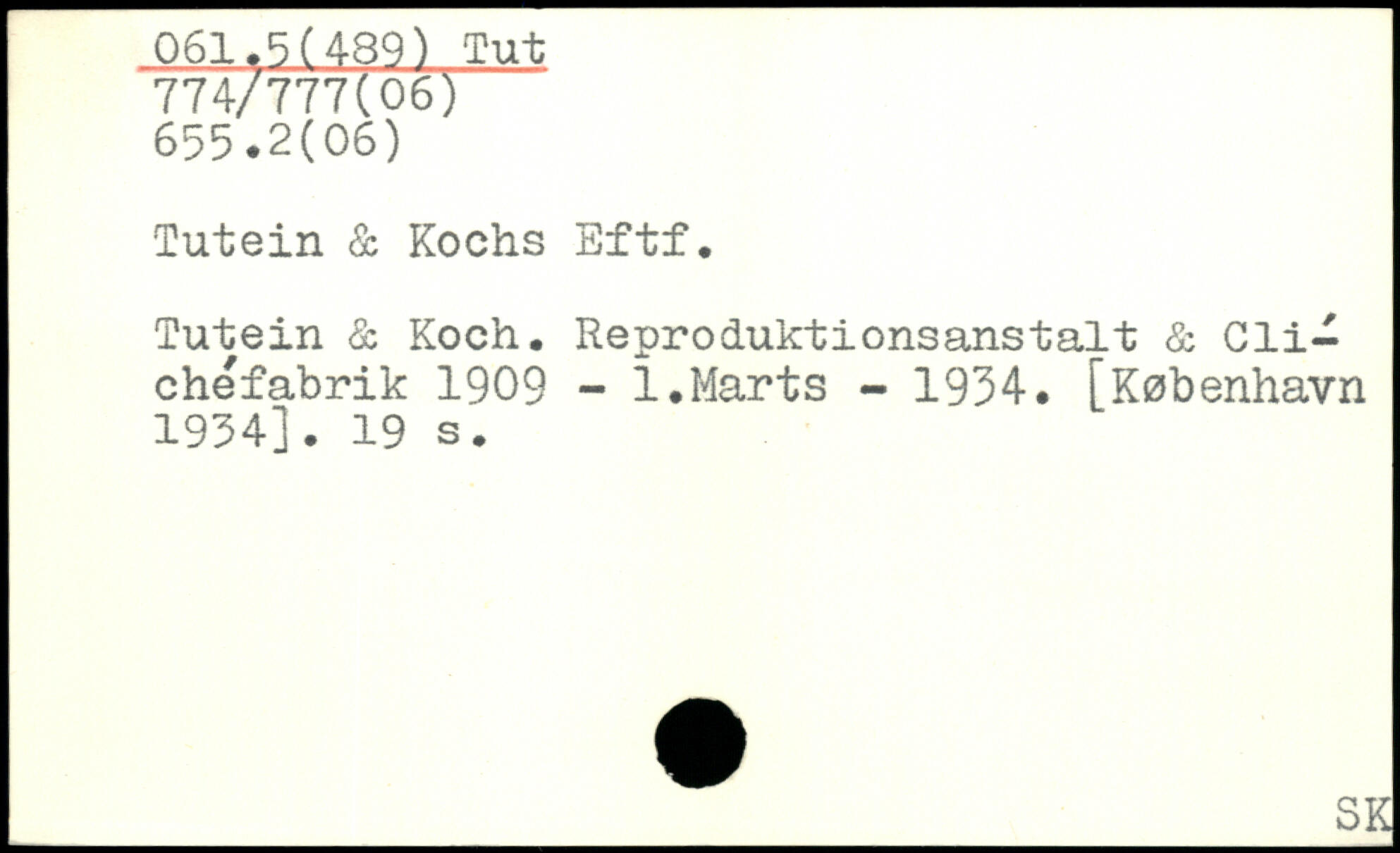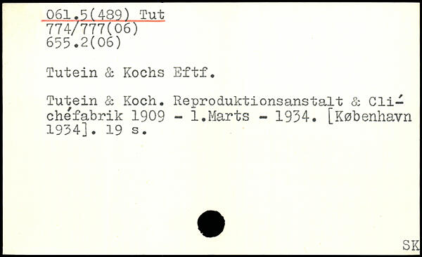 Tutein & Kochs Eftf. lutein & Koch. Reproduktionsanstalt & Clichéfabrik 1909 - 1.Marts - 1934.