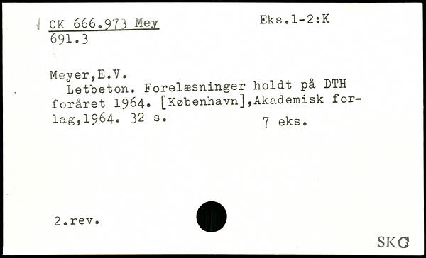 Letbeton. Forelæsninger holdt pa DTH foråret 1964.