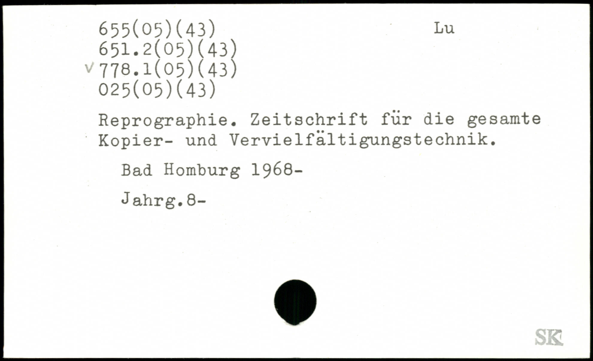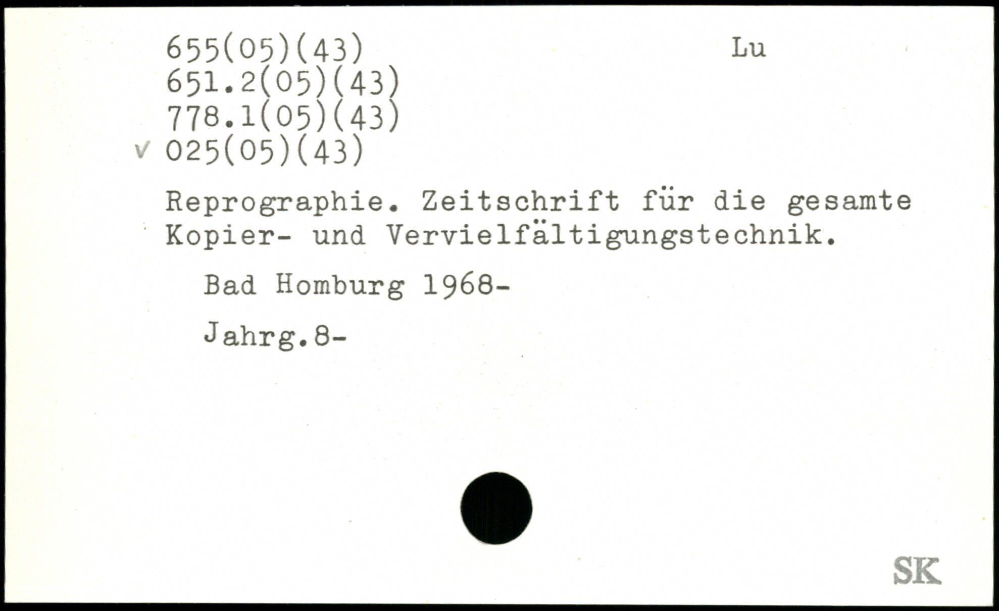 Reprographie. Zeitschrift für die gesamte Kopier- und Vervielfältigungstechnik. Bad Homburg 1968- Jahrg.8-