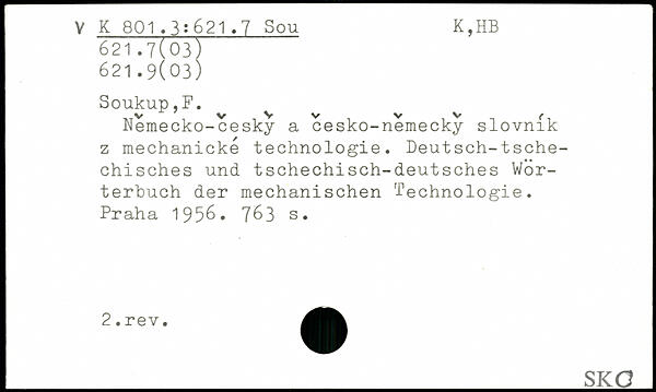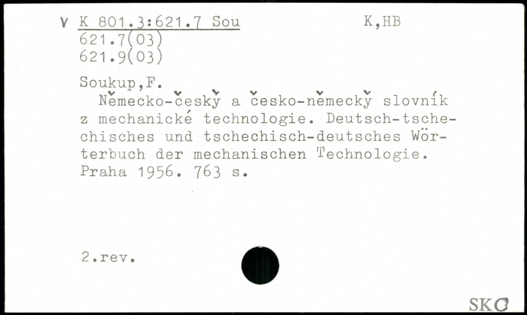 Nemecko-cesky a cesko-nemecky slovnik z mechanické technologie, Peutsch-tsche-chisches und tschechisch-deutsches Wörterbuch der mechanischen Technologie.