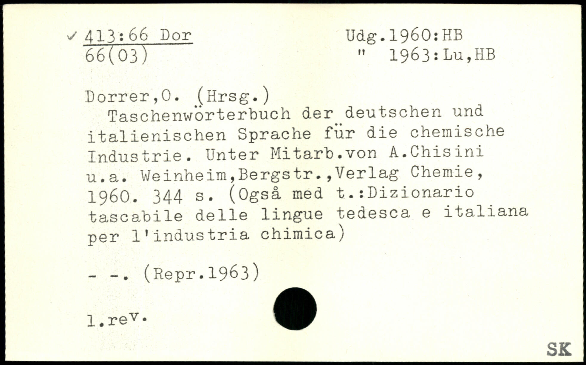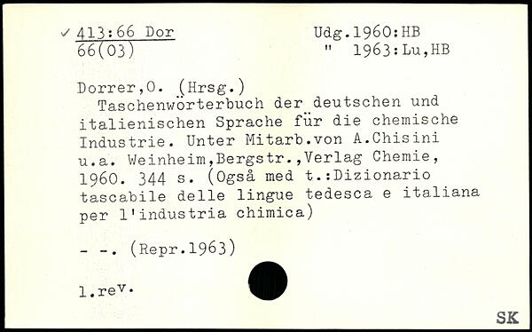 Taschenwörterbuch der deutschen und italienischen Sprache für die chemische Industrie. Unter Mitarb.von A.Chisini u.a.