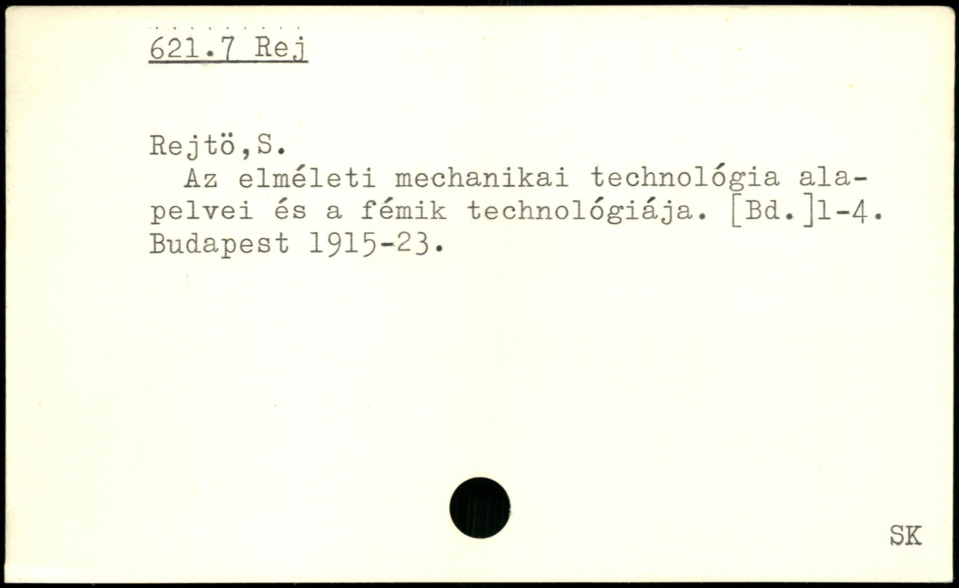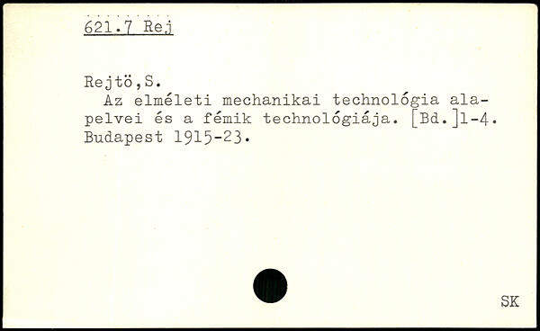 Re j tö,S. Az elméleti mechanikai technologia ala-pelvei és a fémik technologiaja. [Bd.]l-4.