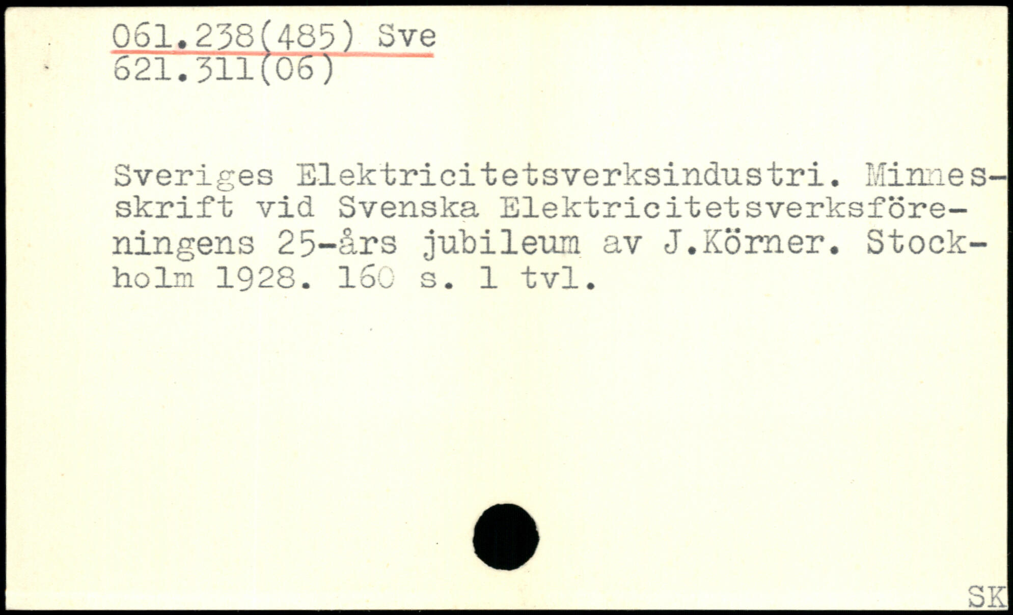 Sveriges Elektricitetsverksindustri. Mimes-skrift vid Svenska Elektricitetsverksfore-ningens 25-års jubileum av J.Komer.