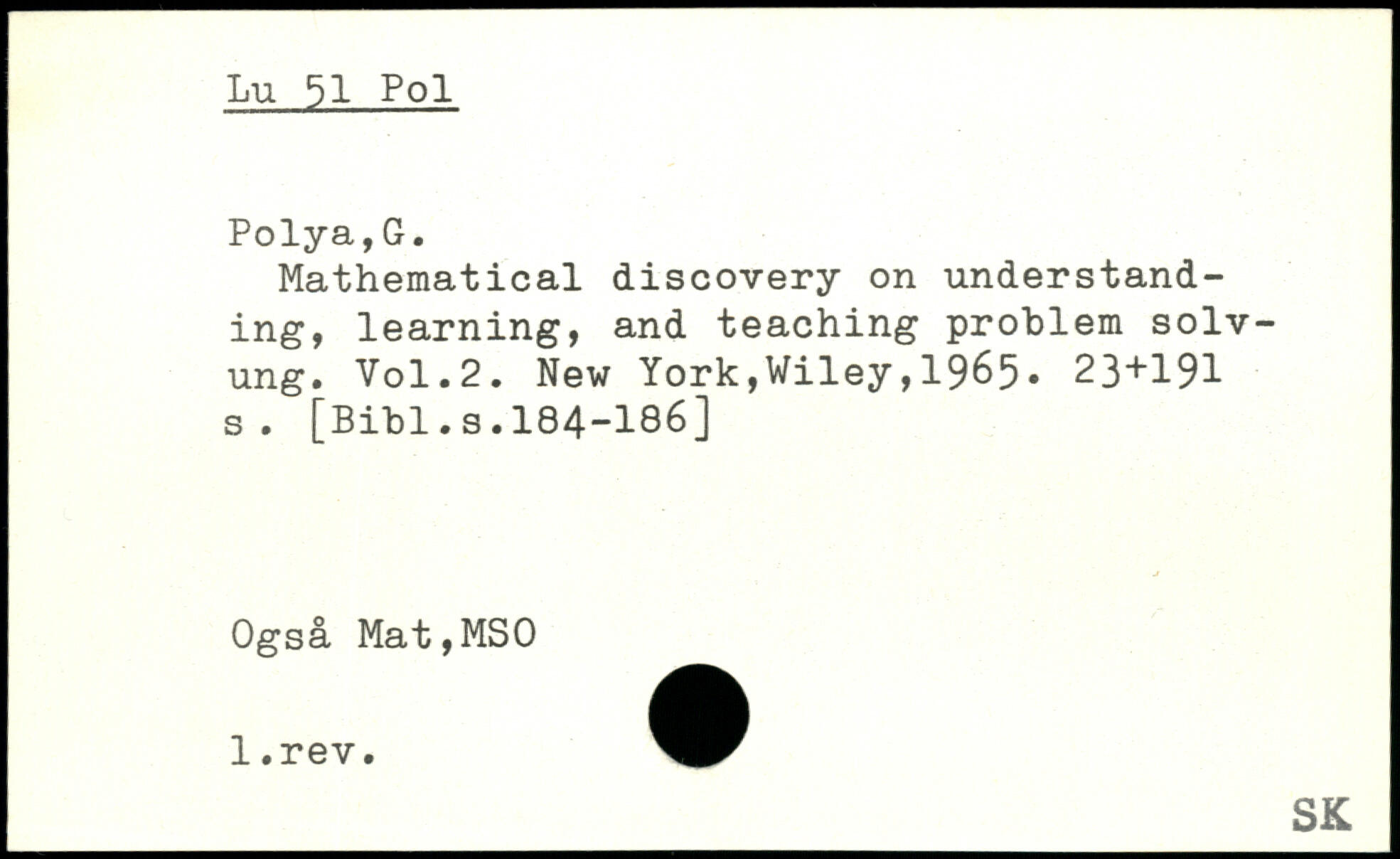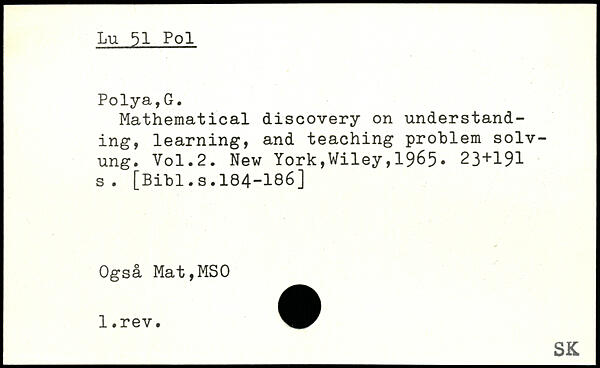 Mathematical discovery on understanding, learning, and teaching problem solv-ung.
