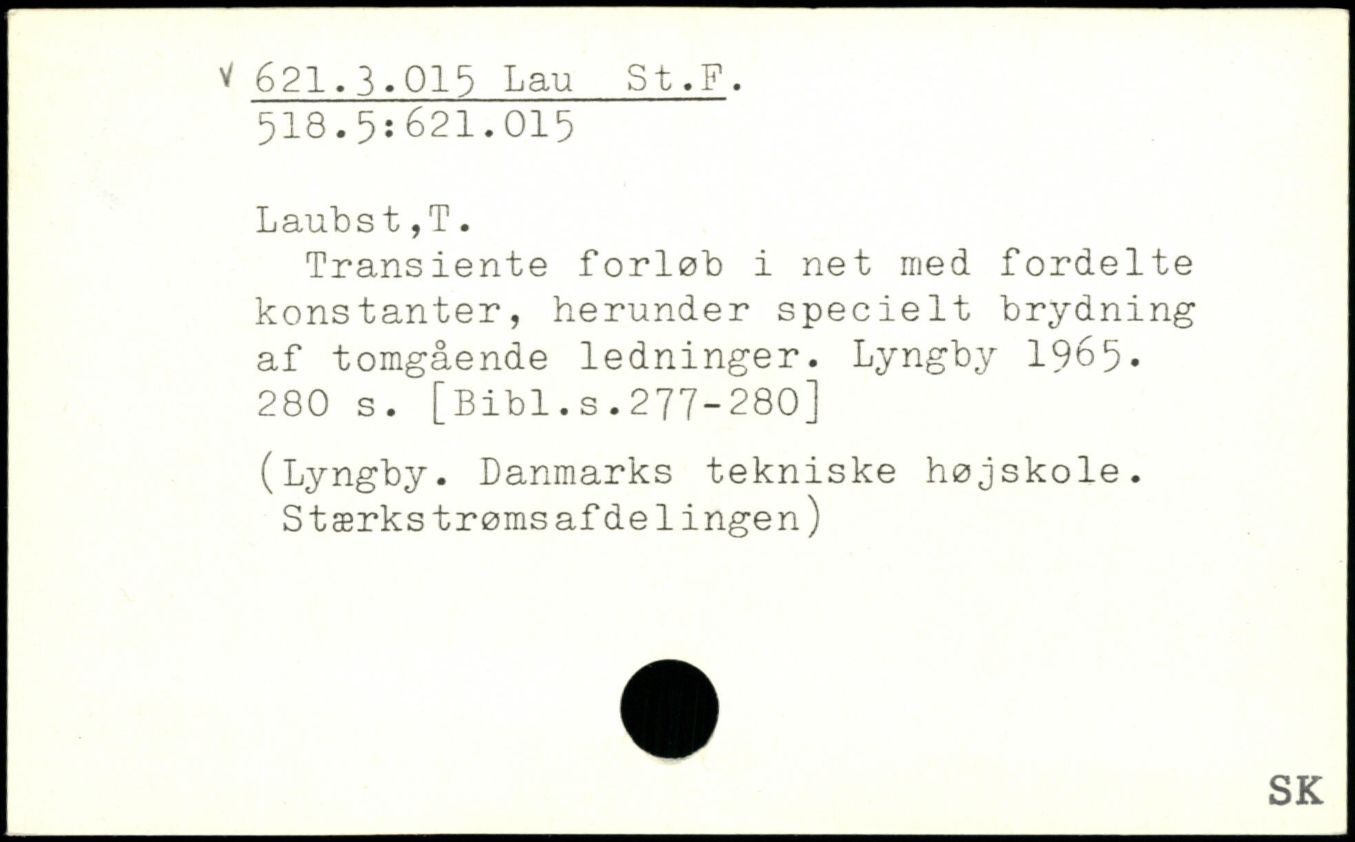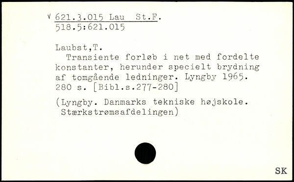 Transiente forløb i net med fordelte konstanter, herunder specielt brydning af tomgående ledninger. Lyngby 1965