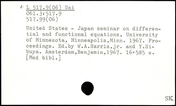 United States - Japan seminar on differen-tial and functional equations, University of Minnesota, Minneapolis,Minn. 1967. Proceedings. Ed.by W.A.Harris,jr. and Y.Si-buya.